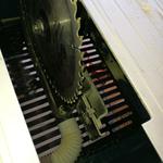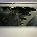 Az asztalt, sikerült "dörzsivel", megtisztítani. A lap körüli betétnél a csavarok a betét alá kellenek, szépen szintbe állítottam. A tolóasztalból hiányzik két műanyag vezető,, de így is alig kotyog. Alakul a gép.