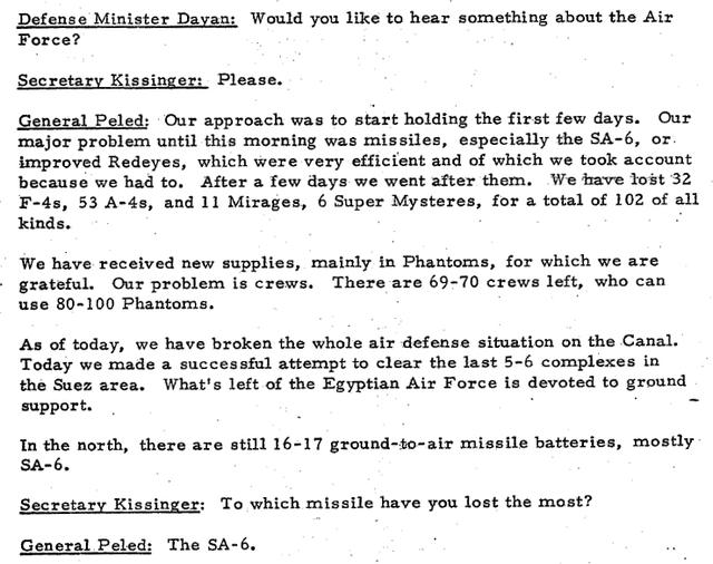 Simán lelövöldözték a szovjet (meg NDKs és É-koreai) pilótákat is. Az egyiptominak eladott oroszok vissza is húzódtak az atombiztosra kiépített légvédelmi rendszerek mögé. Aki átment a másik térfelére meg is murdelt. A zsidók sokkal jobbak voltak a levegőben, az egyiptomi oldalon meg kiválóan üzemelt a moszkvaihoz hasonlóan kiépített légvédelem. Ugyanez 82ben oroszok nélkül már nem működött. Bármelyik légvédelmi rendszer max. az első bevetésig számít korszerűnk.