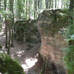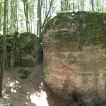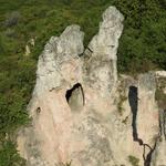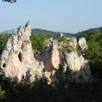 Hamarosan egy széles földutat kereszteztünk, majd nem sokkal később a Teve-szikla lábánál találtuk magunkat. Ezen a szakaszon egy kicsit hiányosak (vagy nehezebben észrevehetőek) voltak a jelzések, de egy kis nézelődés után meg lehetett azokat találni.