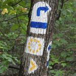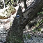 Az Öreg-szirt lábánál volt egy hely, ahol jobban oda kellett figyelni a jelzésekre. Egy sziklán még látható egy régi, kopott kék jelzés, amely korábban egyenesen vitt tovább. Most viszont balra kell kanyarodni, de a dús növényzet miatt nem könnyű észrevenni a fiatal akácfa törzsére festett új jelzést. Ezzel együtt az egész szakaszon jók voltak a jelzések, eltévedni szinte lehetetlen.