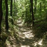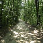 Ezután egy rövid séta következett az ébredező Piliscséven. A faluból kiérve először egy széles, árnyékos kocsiúton haladtunk, majd pedig egy kaszáló mellett vezetett az út. Az emelkedő és az egyre erősebben tűző nap egy kicsit megizzasztott bennünket, de hamarosan újra fák árnyékában haladhattunk tovább Klastrompuszta felé.