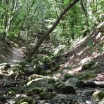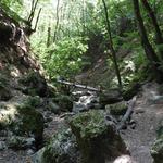 A következő pihenőt a Szent-kútnál tartottuk, ahol a kulacsainkat is feltöltöttük jéghideg forrásvízzel. A víz kissé vas-ízű volt, de a hőmérséklete feledtette a szokatlan mellékízt. Fél 11 után nem sokkal vágtunk neki a túra utolsó, Dera-szurdokig vezető szakaszának. Ekkor már jelentkeztek a fáradtság tünetei a gyerekeken, de mindenki hősiesen rótta a métereket. Kb. 1 óra alatt értünk el a szurdok bejáratáig. A szurdok valóban lenyűgöző volt, csak egy dolog hiányzott belőle, a víz.