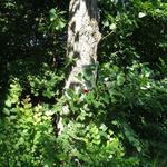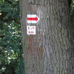 Ekkor már fél 11 felé járt az idő, árnyék csak elvétve, így örültünk, amikor Kesztölcről kiérve és a 117-es úton átkelve ismét fák között folytathattuk a túrát. Magas, kopasz fákra festett jelzések mutatták, hogy hol kell balra fordulni.