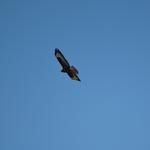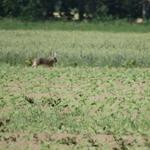 A szántóföldek között talán unalmas lett volna az út, amikor balra megláttunk vagy 4-5 nyulat az erdősáv szélén. Mire előkaptam a fényképezőgépet eltűntek, mert az égen feltűnt egy parlagi sas pár. Sokáig köröztek, majd méltóságteljesen odébbálltak.