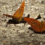 A kerítés mellől már látszott a töltés, ahol észak felé kell fordulnunk, de előtte megálltunk első pihenőnkre. A nap már erősen tűzött, mikor majdnem ráfordultunk a töltésre. Azért csak majdnem, mert ebben a tavaszi-nyári időszakban a természet az úr. Majd méteres a gaz, így a töltés aljában, a gazdák által kitaposott füves részen folytattuk utunkat. Vagy jó fél órája bandukoltunk szótlanul, amikor is egy kisebb facsoportnál megálltunk inni. Itt olyan piros jelzéssel találkoztunk, ahol fel volt festve, hogy mennyit jöttünk a gáton, illetve, hogy mennyi van még hátra. Ez utóbbi szám volt a kevesebb. Épp indulni akartunk, amikor – mint a mesében – vagy száz pillangó kiröppent az erdőből és mintha ott sem lettünk volna vad táncba kezdtek körülöttünk. A hátizsákunk a ruhánk és a karunk leszállópályává avanzsált a huncut játékukhoz. Kis idő múlva már fáradtan napoztak a talajon.