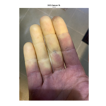 Én is ilyen vagyok. Érdekes, a lábam nem érzékeny különösebben a hidegre, de a kézujjaim igen. Vehetek fel bármilyen kesztyűt, előbb-utóbb utolér a végzet. Többször volt enyhébb fagyási sérülésem valamelyik kézujjamon. Sokszor nulla fok se kell hozzá, elég egy hűvös, nedves, nyirkos idő. A képeken az én kezem látható, bár az ilyen állapot többnyire már csak akkor jelentkezett, amikor bementem a hidegről a melegre. Gondolhatod, hogy néha mit szenvedtem a Téli Mátra XL-en vagy a Tortúra 65-ön egy hideg téli napon, hisz ezek 5-9 órás utak voltak. Előfordult, hogy félórákig nem éreztem a kezemet, nagyon lassan tért vissza beléjük az élet. Addig használni se nagyon tudtam. Ha vékony kesztyűt vittem, azért fagyott le, ha vastagabbat, abba meg beleizzadt, és utána belehűlt. Most, hogy már rövidebbeket futok csak, nem olyan nagy probléma, de kijelenthetem, hogy én 10-25 fok között érzem magam a legjobban...