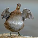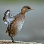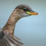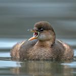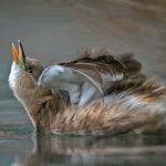 Madaraknál a középre súlyozottat alkalmazom és a legtöbbször alá exponálok. Ilyen szürke időben is a kiégés réme fenyeget, ha van fehér a madáron. A felfelé csücsörítő vöcsök nyaki része így is necces, pedig lehúztam a csúcsfényeket.