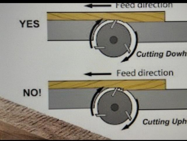 Nem is jó képet tettem be. Bocsi, nem figyeltem eléggé. Neked ez a kép nem segítség. Haoldalról nézed a deszkát, a "szál" lefelés vagy felfel megy, "kilép" a deszkából. Olyan irányba tedd a gyaluba, hogy a kések ne próbálják mégjobban kitépné a felületből hanem inkább szorítsák lefelé, és vágják el. Húh, ezt nehéz elmagyarázni képek nélkül