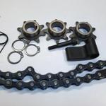Ebből annyi látszik, hogy a meghajtó lánckerék tengelye durván csapágyas/lóg, és "ugrálva" megy a lánc. Valószínűleg a motor fordulatszám csökkentő részében lesz a hiba, de tegyél alá egy gyalulni valót és nézd mi áll meg.