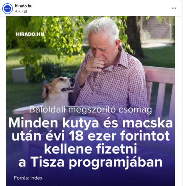 Közmédia Gecisztánban: "Minden kutya és macska után évi 18 ezer forintot kellene fizetni, és még súlyosabb terhek várnának azokra, akik elhagyják vagy magára hagyják az állatukat: naponta 8 ezer forintos tartásdíjat, plusz az állatorvosi költségeket is behajtaná az állam. A kisállattartás további drágulását okozná, hogy a program a kisállat-termékekre az áfán felül további 4 százalékos adót raknaa kutya- és macskaeledeltől kezdve a kisállat-almokon át egészen a papagáj- és hüllőeledelekig."
