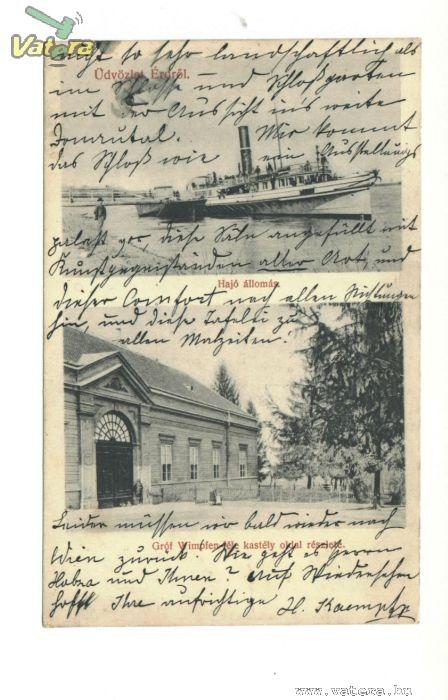 Annyi érdekesség van a képen, hogy a (termes)gőzös orral lefelé - folyásirányban van kikötve. Ez nagyon nem életszerű. Tán csak nem "photoshop"-olták meg a negatívot és felcserélték a bal és jobb odalt?