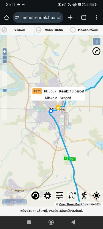 5255/325 Kecskemét (11:35) Szentes (13:00) egy órával később közlekedik.