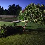 A megdőlt törzsét óvatosan vissza lehet állítani, és egy erős, leásott oszlop vagy vascső mellé odahúzni és megkötözni. Lomb nélkül tavasszal könnyebb még húzni a fán, és jobban odakötni hogy valamennyire függőlegesen álljon.