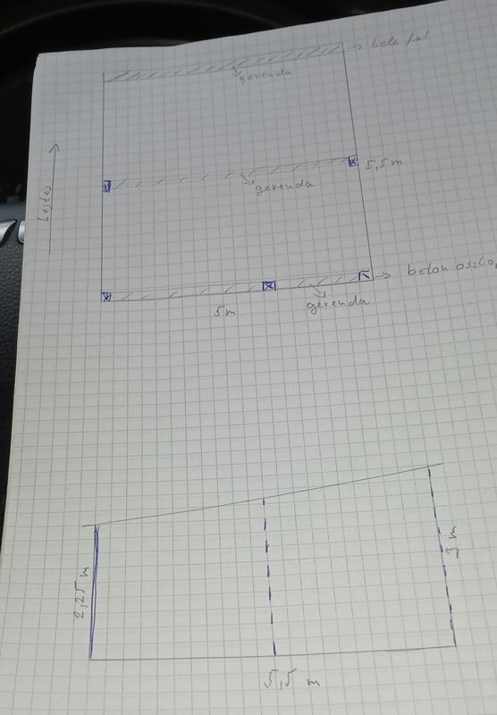 Marad a trapézlemez fedésű ferde tető,mert menetközben eladtam a cserepem. Így nekem jobb is,számomra így egyszerűbb lesz.  Sikerült beszélnem egy áccsal is. Mostmár nagyjából végleges a gondolat. A középső gerenda,ami az 5 métert hidalja át,az úgy fog alakulni,15x20x6méteres lesz,élére állítva. 30x30as pillérzsaluból lesz az oszlop,amire rákerül. Így mindeggyi oldalon felfekszik 30-30cm-t,és még 20-20 centit ki is lóg. Erre jönnek majd keresztbe lejtés irányba a 7,5x15-6méteres szarufák,kb 70centinként. Azt mondta az ács,hogy ez a 15x20-as gerenda ilyen opcióba bőven kibír mindent is,még a havazást is. Remélem,hogy igazat mondott🙂...már nyugdíjas,meg régen nem dolgozik/dolgozott ács szakmában,de annó ügyes volt.