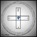 Jakob Böhme (1575 - 1624) német filozófus, misztikus és teozófus "Theosophia Revelata. ..." című, 1715-ben kiadott könyvének 1919. oldalán ugyanez a rendszer látható egy csúcsával felfelé fordított szívalakba ágyazva, Immanuel, Jesus és Christus felíratok társaságában és az alábbi szövegrészlet kíséretében: