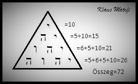 A JHVH (יהוה) szó betűértékeit a fenti módon összeadják és az 72-t eredményez...