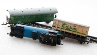 Sziasztok! Lehetőleg egybe 65,000,-Ft-os áron eladó a következő TT gyűjtemény. A dekor anyagokon, + sorompókon kívül minden egy terepasztal (80%) része volt, sokat volt gyepálva az ide oda rakosgatással. Próbáltam olyan képeket készíteni, ami a jelenlegi állapotokat tükrözi. Szinte mindenre ráfér egy felújítás, oxid réteg eltávolítás. Elnézést, hogy nem szakszavakat használok a szerelvényekre. A hiányosok között látható egy fehér vagon aminek később találtam kereket.Átvétel személyesen Pmegye.