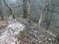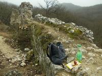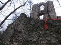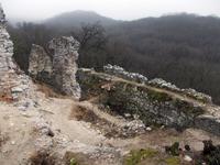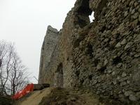 A romot ezúttal észak felől kerültem meg, hatalmas falak vannak ezen az oldalon is többnyire omladozó állapotban. Lombmentes időben a legjobb várat nézni és fotózni, jelen esetben az alsóbb védvonalak nyomai is szépen kirajzolódtak.