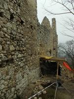 Utoljára húsvétkor voltunk itt, akkor még a félméteres mélységű több méter hosszú kiomlások láttán azt hittem menten ledől az egész, ezzel a falazással megmentették egy időre a vár legjelentősebb részét.