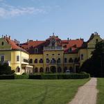 A turistaszálló és helytörténeti kiállítás magas fenyőfák között álló épülete mellett értem el Nagymágocs főutcáját, ahol aztán meglettek ismét a kék jelzések. Visszafelé indultam el a jelzéseket követve a Károlyi kastély felé, pár száz lépéssel el is értem a főkapuját. A kéktúra pecsét a portásfülkében van, elintéztem az adminisztrációt és a pakkot itt hátrahagyva elindultam megnézni a parkot és kastélyt. Mindkettő nagyon szépen rendbe van téve, gondozottak a sétányok is, lesétáltam rajtuk egészen a tópartig. Nem is értem, miért tilos a fényképezés itt, amit a portás kellően a lelkemre is kötött, aztán azzal bocsátott a sétámra, hogy ő nem lehet állandóan a nyomomban ellenőrizni, betartom-e azt!