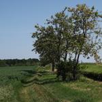 A kastélylátogatás után végigsétáltam a hosszú falun, aztán balra tértem a Kossuth Lajos utcára, de a sarkon megálltam a Hóbort-Hangya kocsmánál egy seritalra. Feltöltöttem az italkészletem pár tucat lépéssel arrébb a jól felszerelt Reál-Pont élelmiszerboltban, és vettem három zsemlét is a hozzávaló szeletelt parizerrel, amit a bolt előtt lazán gallér mögé is toltam reggeli-kiegészítésképpen. Nagymágocsot aszfalton hagytam magam mögött, és csak az út északra ívelő kanyarja után tértem le róla jobbra a Szendreimajornál. Mezei földutak jöttek, mellettük futó foghíjas fasor adott árnyékot a már délelőtt is tűző napsugarak ellen, tanyák mellett sorjáztam el, aztán csak Árpádhalom előtt kapott az út újra kopott aszfaltburkolatot.