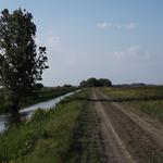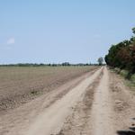 Öntözőcsatorna partján vezető földúton a kiszemelt erdőfolt felé