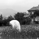 Budapest, II. kerület, Törökvész - Herman Ottó út 25./b alatti társasvilla a szomszédos, Herman Ottó út 23. számú kertből fotózva. Golodai Kornél, a Magyar Általános Kőszénbánya Rt. nyugalmazott igazgatója és felesége, szül. Kirch Johanna kétlakásos társasvillája; tervező Feleki Zoltán (1942. április).