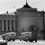 195938 - Oroszország, Szentpétervár, Az Admiralitás (Главное адмиралтейство) épülete a Palota-híd (Дворцовый мост) felől.