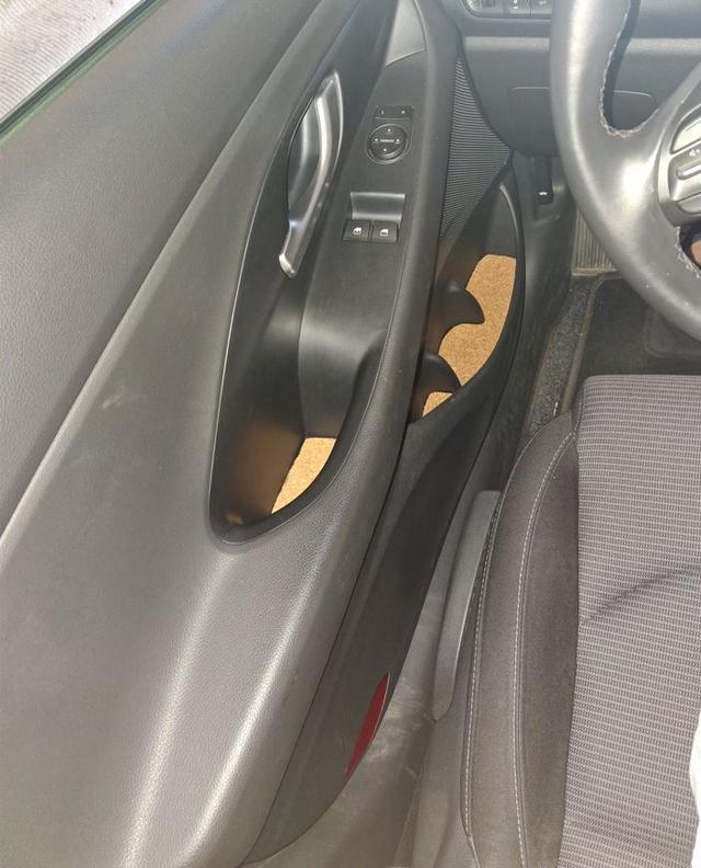 Ez utóbbit le is tudjuk gyorsan, mert ez csak egy órácskát igénylő párhuzamos foglalatosság volt: Tettem - formára vágva - az összes oldalajtó üregeibe - az italtartóéba is - s tettem a középkonzol pohártartóéba és a váltókar előtti üregbe is.