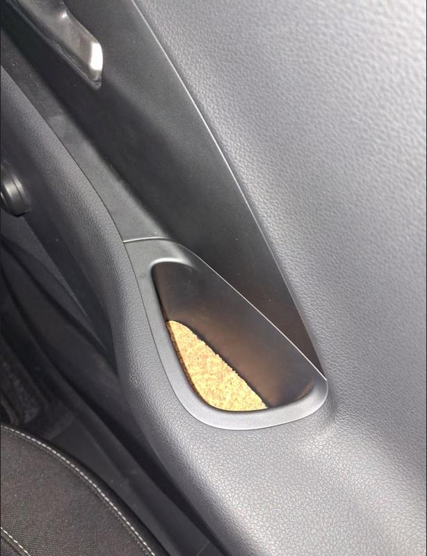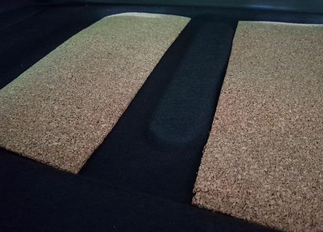 Az üregek - bármilyen jelentéktelennek is tűnnek - nagyon szeretnek hanghullámot rezonálni...Tettem az első ülések alatti kereszttartókra is egy-egy mérethelyes lapot, illetve tettem a kalaptartóra is három formára szabott darabot a maradékból.Persze több lépésben próbálgatva.A zenei hangzásnak (no meg a prémium érzésnek ;-) ez is már meglepően jót tett., hiszen lenyugodtak az "uborkás üvegek".