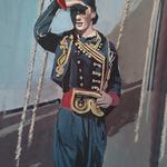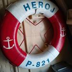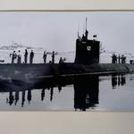A konkrét hajós kiállítási tárgyak között a később megtekintett tengeralattjáró fotója is látható, még szolgálat közben:
