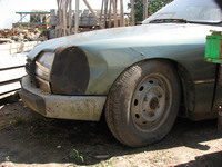 Új lépést tettünk meg a GSA felújításában. A bontósról lekerült a motorháztető, a két első sárvédő, az alsó homlokfal, meg pár apróbb alkatrész. Az ajtók nem jobbak, mint a másikon, ezért azokat csak lekaptuk, de nem hoztuk fel. Szerencsére az első sárvédők szinte hibátlanok, az egyiken vagy egy kisebb horpadás, de rozsda csak felületi, és az is alig. A mester, akivel bontottam, végig csodálkozott, hogy egyik csavar sincs berohadva egy 1982-es autón. Nekem fel sem tűnt, de tényleg így volt, szerencsére. A nyári szabi alatt bontom a belsejét, végül a futóműveket, és aztán a csupasz kasznit elviszem a méh-be, már ha marad valami, a bodé elég rozsdás, sajnos...